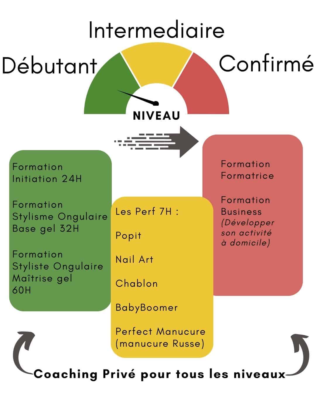 Si vous choisissez une formation en stylisme ongulaire d’un niveau supérieur à vos connaissances actuelles, vous risquez de vous retrouver dépassé et de rencontrer des obstacles dans votre compréhension et votre apprentissage. Cela peut entraîner un sentiment d’isolement et de découragement, compromettant ainsi son expérience de formation.